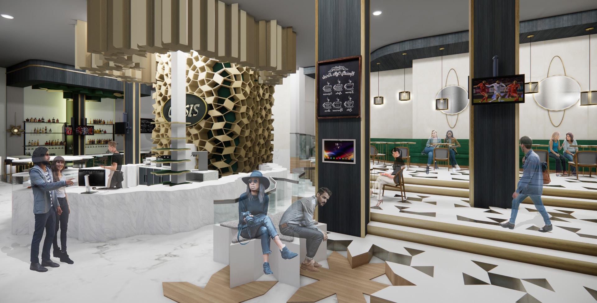 Oasis is a conceptual design for District S based in Beirut, Lebanon. The design goal was to create beautiful spaces that reflect the culture and wealthy atmosphere of Beirut. This location had many spaces to design that all needed to connect and create a universal plan for the public. The concept focuses on creating a self-care and leisure space for people to enjoy life. There are four different patterns used through the six zones. Each pattern was specifically placed in each zone to develop spacial designs as well as ornamental use throughout District S.