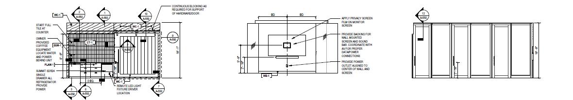 WORK AREA EAST ELEVATION CONFERENCE ROOM EAST ELEVATION ESPRESSO BAR EAST ELEVATION WORK AREA NORTH ELEVATION KEY PLAN