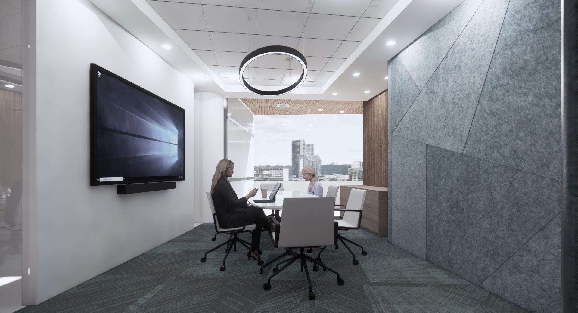CONFERENCE ROOM - SEATS SIX PEOPLE WITH ADDED FELT WALL FOR ACOUSTICS