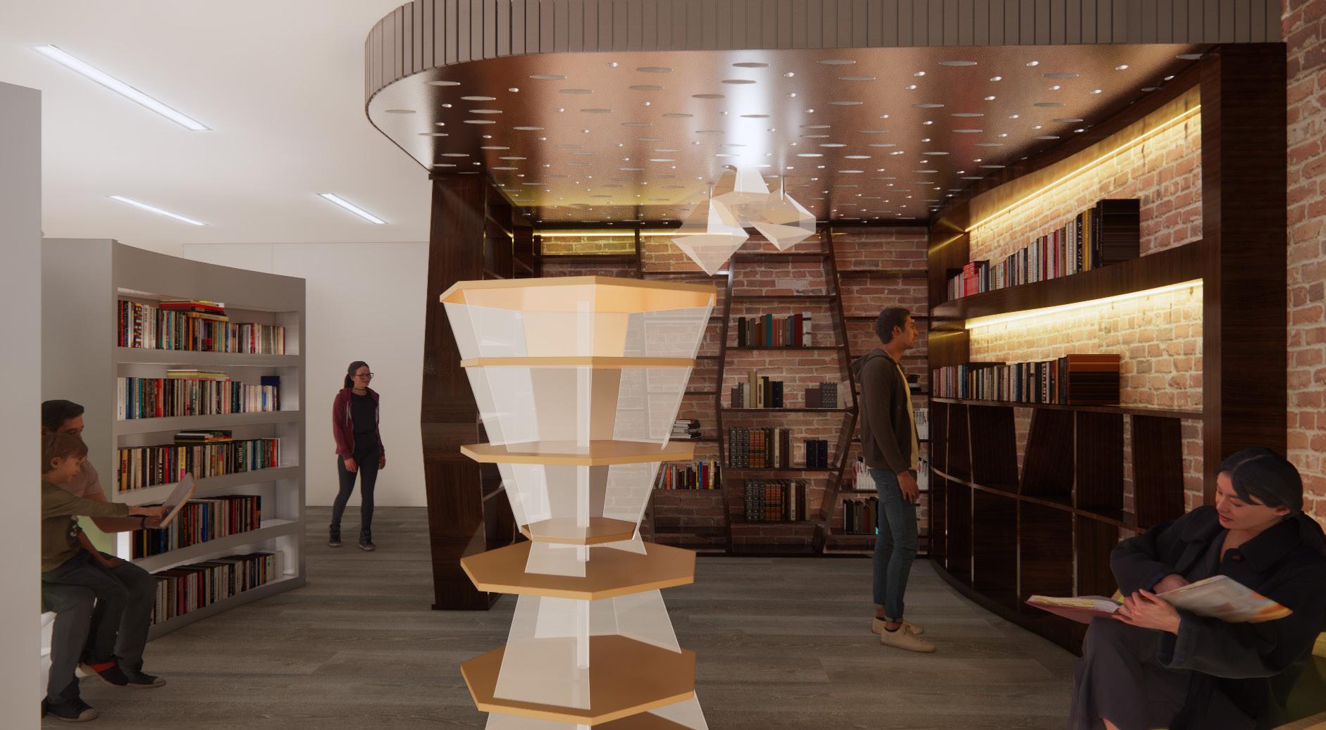 Sweet Reads is a bookstore and candy shop that sparks people’s imagination and brings out the child that lives in everyone. It consists of geometric shapes and interesting structural elements that are captured from the idea of candy crystals. It translates the idea of the owl and technology by playing with old and new materials. This shop has a modern yet cozier feel by incorporating a warmer materials palette.