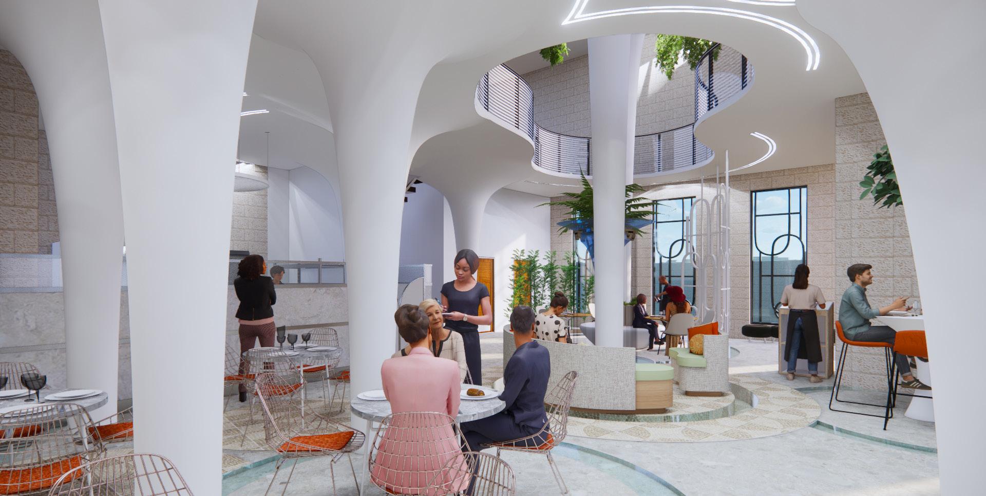 The materials palette is based on the popular Israeli meal Hummus. Jerusalem is known for having some of the best hummus in the country. The site materials are selected to capture the beauty and simplicity of Jerusalem’s hummus. The materials are meant to be lighter and delicate to support the existing limestone walls and the lofted columns that connect the different spaces together.