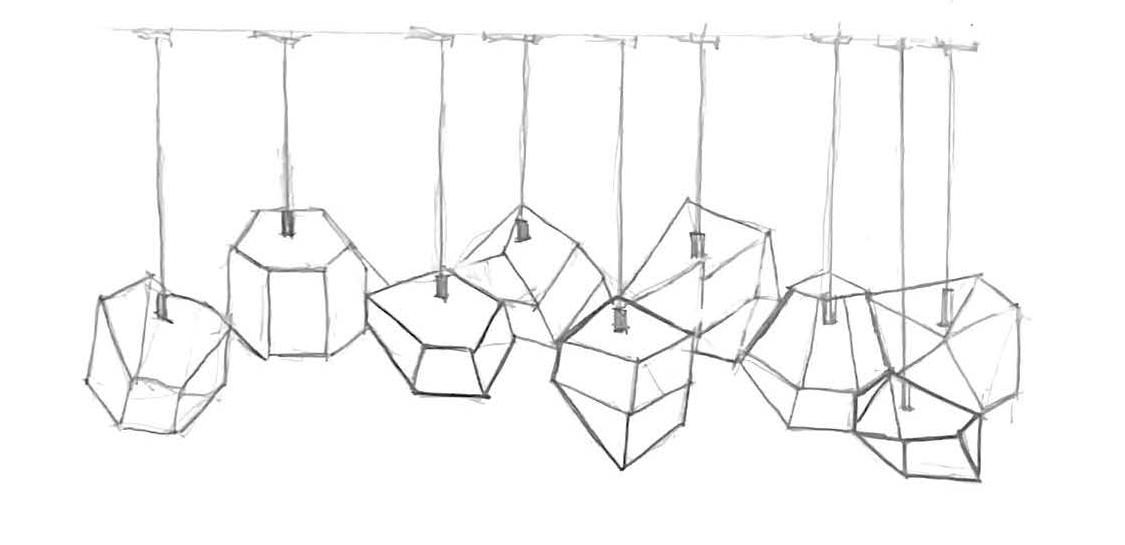 The forms seen in this project explore the idea of power lines that grow and expand to connect an abundance of people together. This growth can be seen through the crystallized clustered light fixture.
