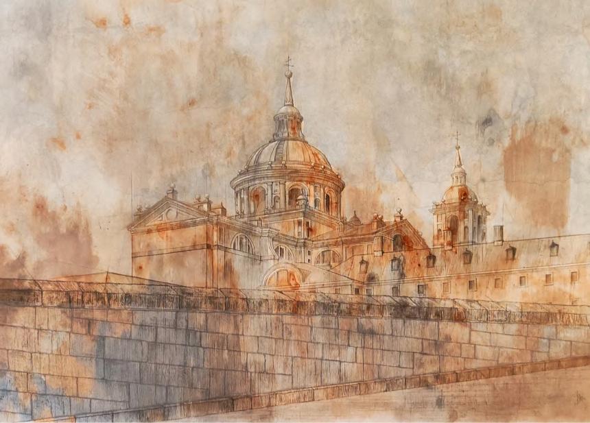 acrílico y óleo sobre tabla - “Una hermosa vista del Escorial” dim. 100x70cm
