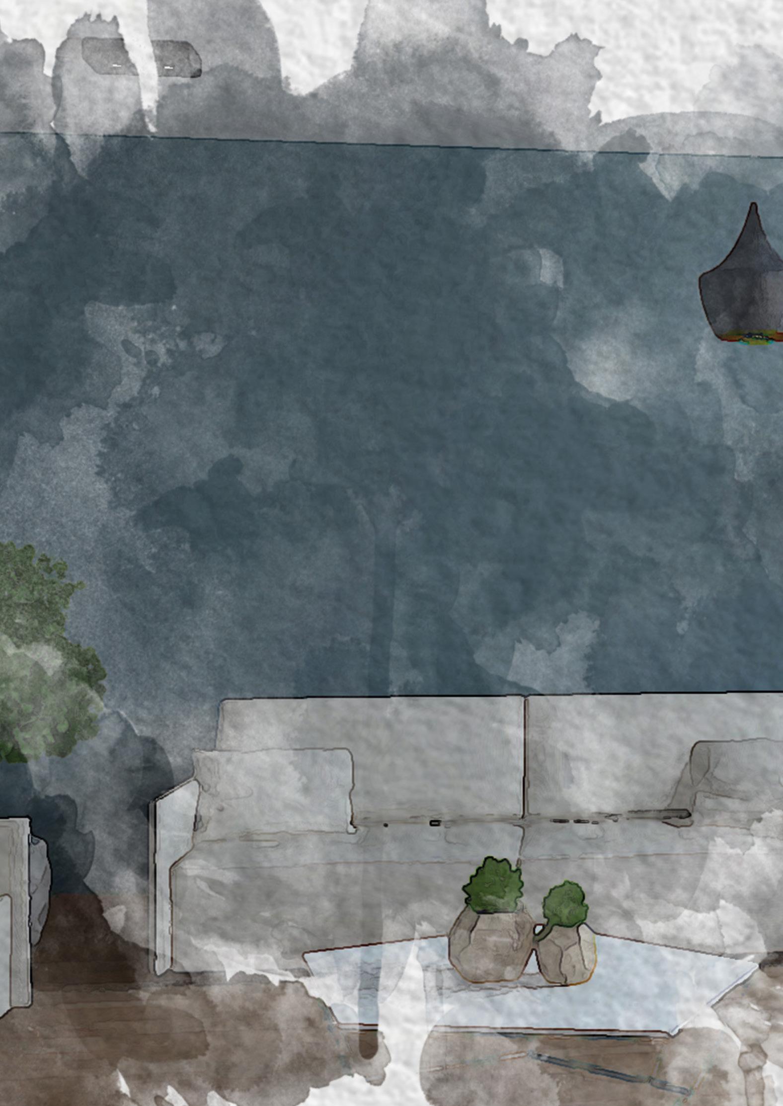 La vivienda esta diseñada en 2 partes, la primera parte, es la vivienda y la segunda que es el comercio. Cuenta con un estilo minimalista pero sin perder esas formas redondeadas que le gusta al artista. El comercio seria taller y tambien exhibición de los proyectos de Marcelo, se mantiene el mismo estilo que la vivienda, sin perder algo del diseño de su tienda actual. Las tonalidades que se usaron son neutras y tonos maderas.