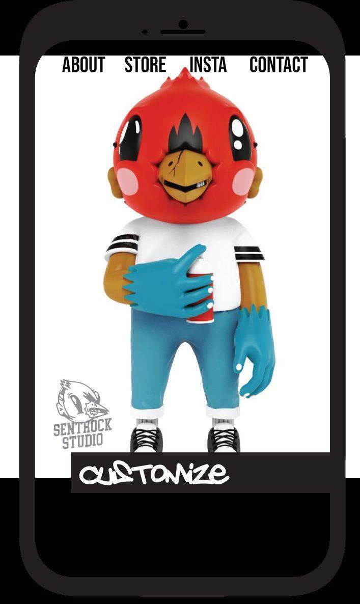 On the app you’ll be able to customize vinyl figures of the famous Sentrock bird and be given the option to purchase through the app.