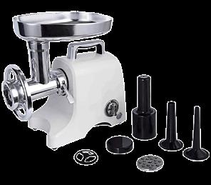 En stor og kraftfuld kødhakker, der kan klare 200 kg/h. Med en robust krop i rustfrit stål og base i aluminium er det en kødhakker, der er bygget til at holde. Med en effekt på 750 W er den kraftfuld nok til at hakke store mængder kød hurtigt og effektivt. Selvskærende kniv og perforeret skive i rustfrit stål. Vejl. 3.595,–