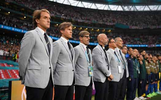 Seitsme Itaalia koondise mängu ajal jäi paljudele televaatajatele silma Itaalia koondise taustajõudude riietus: ei kellegi muu kui Giorgio Armani disainitud ülikonnad olid suviselt kerged ja lihtsad, aga samal ajal ülimalt stiilipuhtad, väärikad ja meeldejäävad. Hea uudis on see, et Armani ülikondasid näeme suurturniiridel veelgi: Itaalia jalgpalliliit sõlmis Armaniga 2019. aastal nelja aasta pikkuse lepingu, mille kohaselt riietab Armani selle aja jooksul nii meeste, naiste kui meeste U21 koondist.
