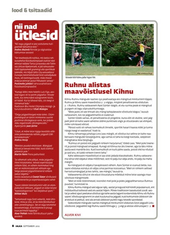 “See reaalteaduslik nutikus, mis laotus rahvusvahelise füüsikaolümpiaadi osaliste näol eelmisel nädalal Tartus ja koondus eile Tallinnas ürituse lõpetamisele, ei jää rahvusvaheliselt tipptasemelt grammigi alla sportlikule talendile, mis hiljuti täitis U19 vanuseklassi Euroopa meistrivõistlustel Eesti vutiväljakute muru, või loomingulisusele, mida imasid endasse eelmisel aastal Põhuteatri seinad.” Postimehe juhtkiri rahvusvahelisest füüsikaolümpiaadist “Kunagi ööbis meie hotellis Luis Figo, aastaid tagasi oli ta parim jalgpallur. Ainuke koht, kus tema käest autogrammi küsiti, oli hotell. Kui ta tänaval käis, siis keegi ei rünnanud teda.” Radisson Blu Hotel Olümpia müügi- ja turundusdirektor Vitali Makejev “Öelgu jalgpallihaiged mida tahes. Olümpiamängud on tänini inimkonna suurim positiivse ühistegevuse vorm, kui pidada sõdu negatiivseks ühistegevuseks.” Ajakirjanik Jaan Jürine “Usun, et mõne teise riigiga koostöös võiksime pretendeerida näiteks jalgpalli EMi korraldamisele.” Andrus Ansip “Meestes puudub emotsioon. Mängijad käivad ja teevad oma tööd, kuid sisemist põlemist pole.” Martin Reim Flora palluritest “Ja vähemalt selle põhjal, mida jalgpalluritest kirjutatakse, teevad ooperilauljad rohkem tööd, on vähem memmekad ning neil on märkimisväärselt väiksem ego. Seega peavad jalgpallitreenerid rohkem vaeva nägema.” Eestis lavastanud Daniel Slater võrdlusest vutitreenerite ja ooperilavastajate vahel “Suure slämmi tenniseturniiri võit on olümpiakullast tähtsam, jalgpall on üldse teisest “kaalukategooriast” kui ülejäänud sport.” Mihkel Mutt “Samamoodi nagu Eesti vabariik, meie ühiskond, mina ja sina, on ka meie fännikultuur alles arenemisjärgus. See on nagu teismelise kasvatamisega, et karistamine ei pruugi tuua parimaid tagajärgi.” Aivar Pohlak meie fännikultuuri pahupoolest