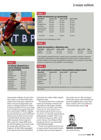 Tabel 4 Mis aladel peaksid soomlased rahvusvaheliselt edukad olema? Spordiala 2009–2010 Suusatamine 40 Kergejõustik 35 Jäähoki 34 Suusahüpped 22 Jalgpall 14 Autosport 10