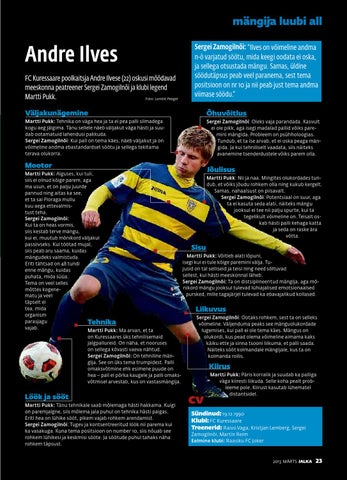 Löök ja sööt Martti Pukk: Tänu tehnikale saab mõlemaga hästi hakkama. Kuigi on paremjalgne, siis mõlema jala puhul on tehnika hästi paigas. Eriti hea on lühike sööt, pikem vajab rohkem arendamist. Sergei Zamogilnõi: Tugev ja kontsentreeritud löök nii parema kui ka vasakuga. Kuna tema positsioon on number 10, siis nõuab see rohkem lühikesi ja keskmisi sööte. Ja söötude puhul tahaks näha rohkem täpsust.
