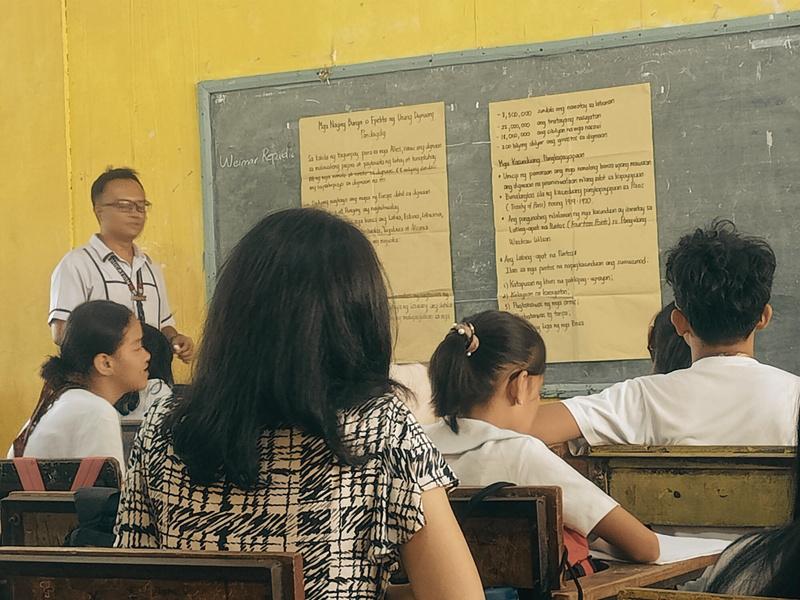 Araling Panlipunan (AP) teacher, Mrs. Mercy Villegas dictating the answers and rationalizing.