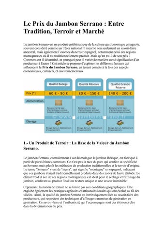 Marc Dufresne est né le 14 avril 1985 à Lyon, une ville réputée pour sa cuisine raffinée et ses spécialités charcutières. Dès son plus jeune âge, Marc a été plongé dans l’univers gastronomique grâce à ses parents, fins gourmets. Cependant, c’est à l'âge de 16 ans, lors d'un voyage familial en Espagne, que Marc découvre ce qui deviendra une véritable passion : le jambon Serrano. Ce moment décisif a lieu dans un petit village d’Andalousie. Attablé dans une bodega traditionnelle, Marc goûte pour la première fois une tranche de jambon Serrano, affiné pendant des mois, au goût délicatement salé et fondant. Pour lui, c’est une révélation. Ce n’était pas seulement un aliment, mais une œuvre d’art gastronomique. Dès lors, le jambon Serrano devient plus qu’un simple plaisir culinaire, il en fait une quête personnelle pour découvrir les subtilités de ce mets d'exception. Après avoir terminé ses études en commerce international, Marc décide de s’installer en Espagne pour approfondir ses connaissances sur le jambon Serrano. Il parcourt les régions d'Estrémadure et de Castille, visitant des fermes et des producteurs locaux, étudiant le processus d'élevage des porcs ibériques, l'affinage et les traditions artisanales. Rapidement, il se fait un nom dans le milieu en tant que fin connaisseur. De retour en France, il ouvre en 2015 une boutique spécialisée à Paris, "El Serrano", où il propose une sélection rigoureuse des meilleurs jambons Serrano. Sa boutique devient un lieu de rendez-vous incontournable pour les amateurs de charcuterie fine. En parallèle, Marc organise des ateliers de dégustation et des conférences sur l’histoire et les subtilités de ce produit, partageant son amour et son expertise avec des clients venus du monde entier. Aujourd'hui, Marc Dufresne est reconnu comme l’un des plus grands ambassadeurs du jambon Serrano en France. Son dévouement à cette spécialité espagnole est inébranlable, et son rêve est de promouvoir davantage cette tradition afin qu’elle soit mieux appréciée à l'échelle internationale.