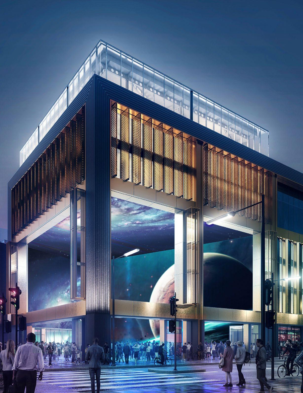 The larger of the two new buildings, which will total 9,290 sqm, includes a ground-breaking urban gallery which will provide a publicly accessible curated space incorporating 1,800 sqm of digital screens. The urban gallery will be used for a combination of brand launches, retail, advertising and screenings and will be operated in conjunction with a 2,000 capacity music and events venue contained within a 2,800 sqm basement box underneath the site. The smaller building, which will total 4,650 sqm, will include a mix of retail, leisure, hotel and office use, with rooftop restaurants and bars.