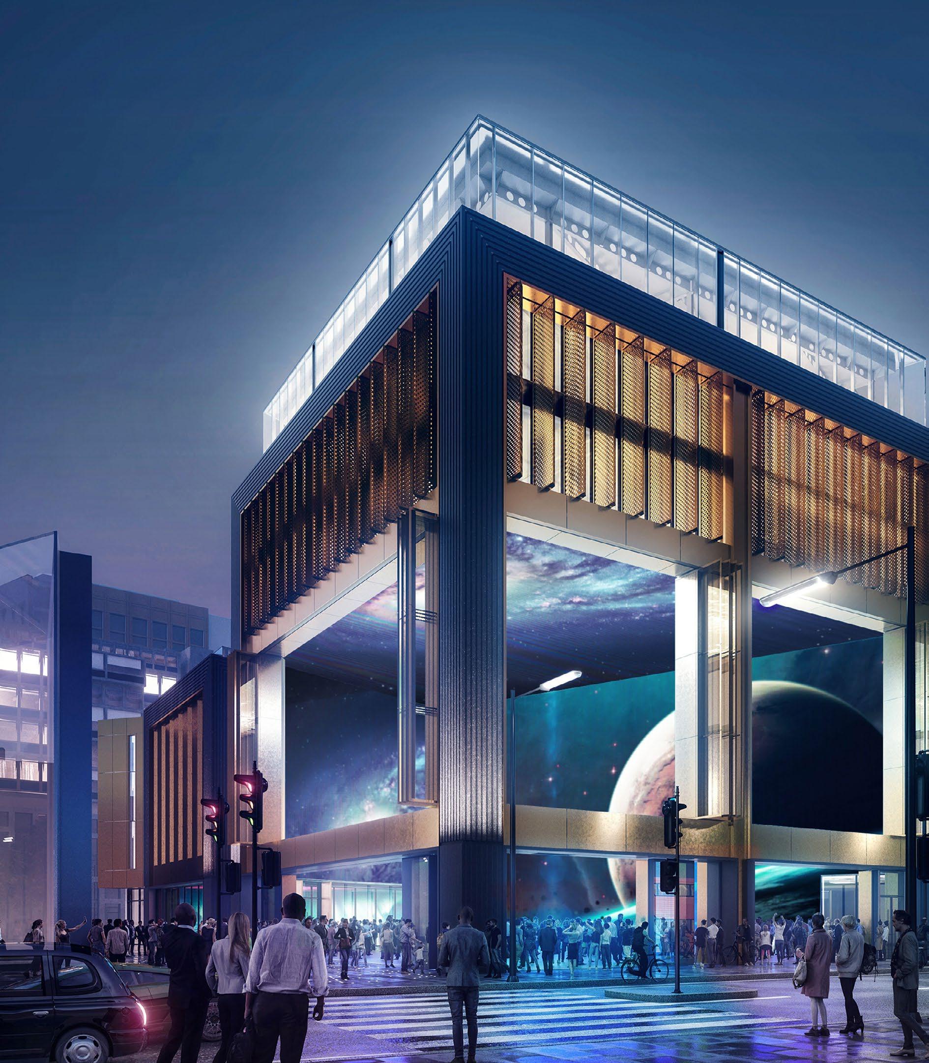 The larger of the two new buildings, which will total 9,290 sqm, includes a groundbreaking urban gallery which will provide a publicly accessible curated space incorporating 1,800 sqm of digital screens. The urban gallery will be used for a combination of brand launches, retail, advertising and screenings and will be operated in conjunction with a 2,000 capacity music and events venue contained within a 2,800 sqm basement box underneath the site. The smaller building, which will total 4,650 sqm, will include a mix of retail, leisure, hotel and office use, with rooftop restaurants and bars.