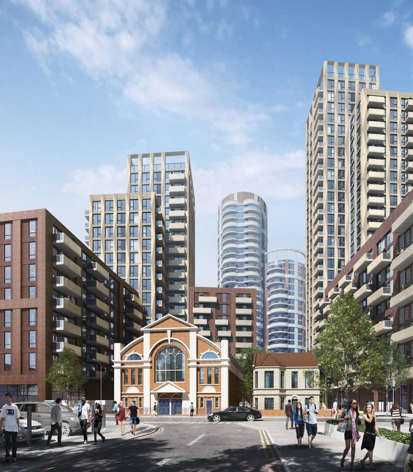 Being the future location of one of the Bakerloo Line Extension stations, 760 Old Kent Road represents one of the most important sites on the Old Kent Road. We led on extensive discussions and are worked collaboratively with the Council, GLA and TfL to bring forward multi-level mixed use development that will deliver a new Bakerloo Line underground station, a new town centre and public square, a significant number of new homes and commercial uses, all within a series of high density tall buildings rising up to 48 storeys.