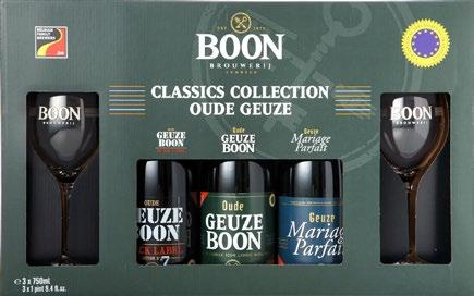 BO3 Boon Classic Collection 1 each of Oude Geuze, Boon Black Label, Geuze Mariage Parfait and 2 glasses