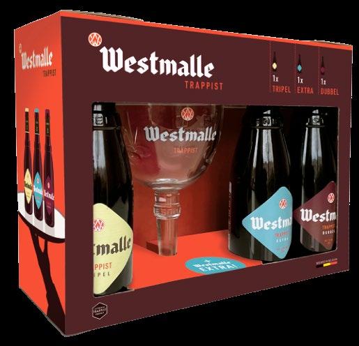 W2 Westmalle Gift Pack 1 each of Westmalle Extra, Westmalle Dubbel, Westmalle Tripel and chalice glass
