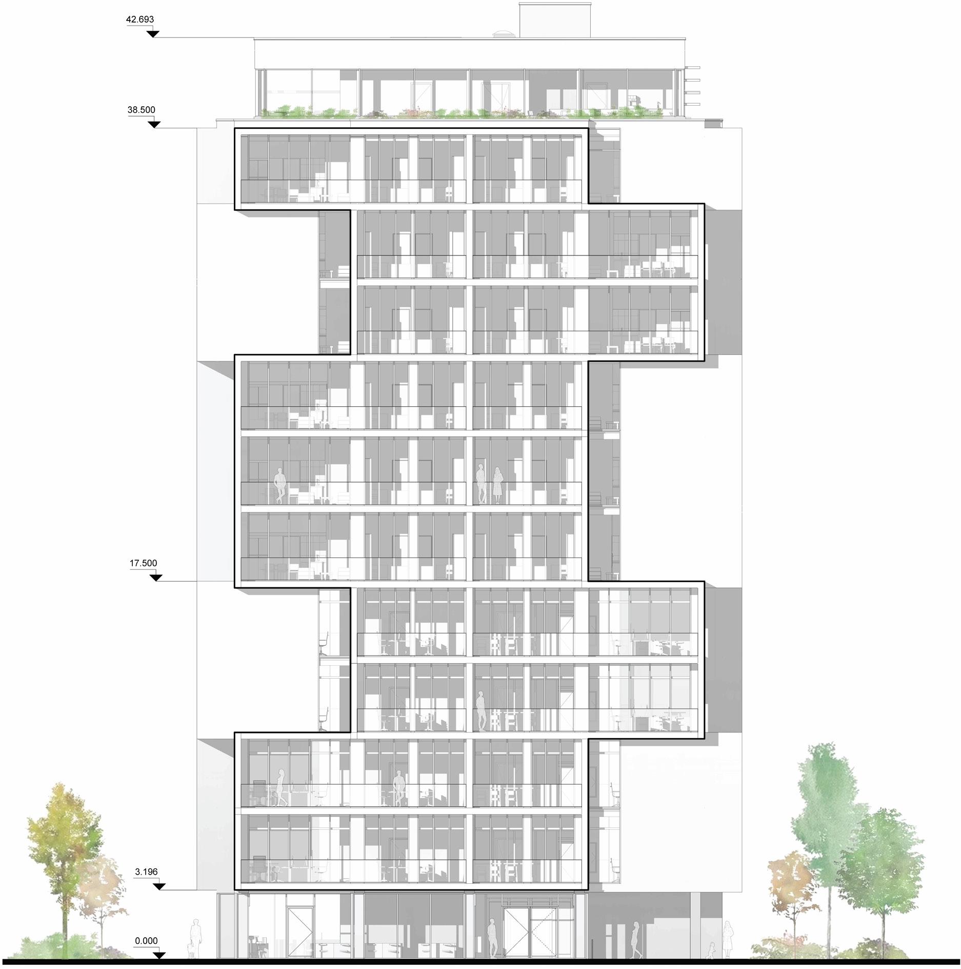 Located in Aarhus, the second-largest city in Denmark, encompasses a 3000 m2 residential area with 3-4 stories of apartments and a business area. The basement consists of storage areas, whereas the uppermost story features a penthouse constructed from lightweight materials. The ground floor incorporates a 200 m2 business area with glass façades adjacent to a 'gate' allowing access to the courtyard and the blocks located at the back of the project.