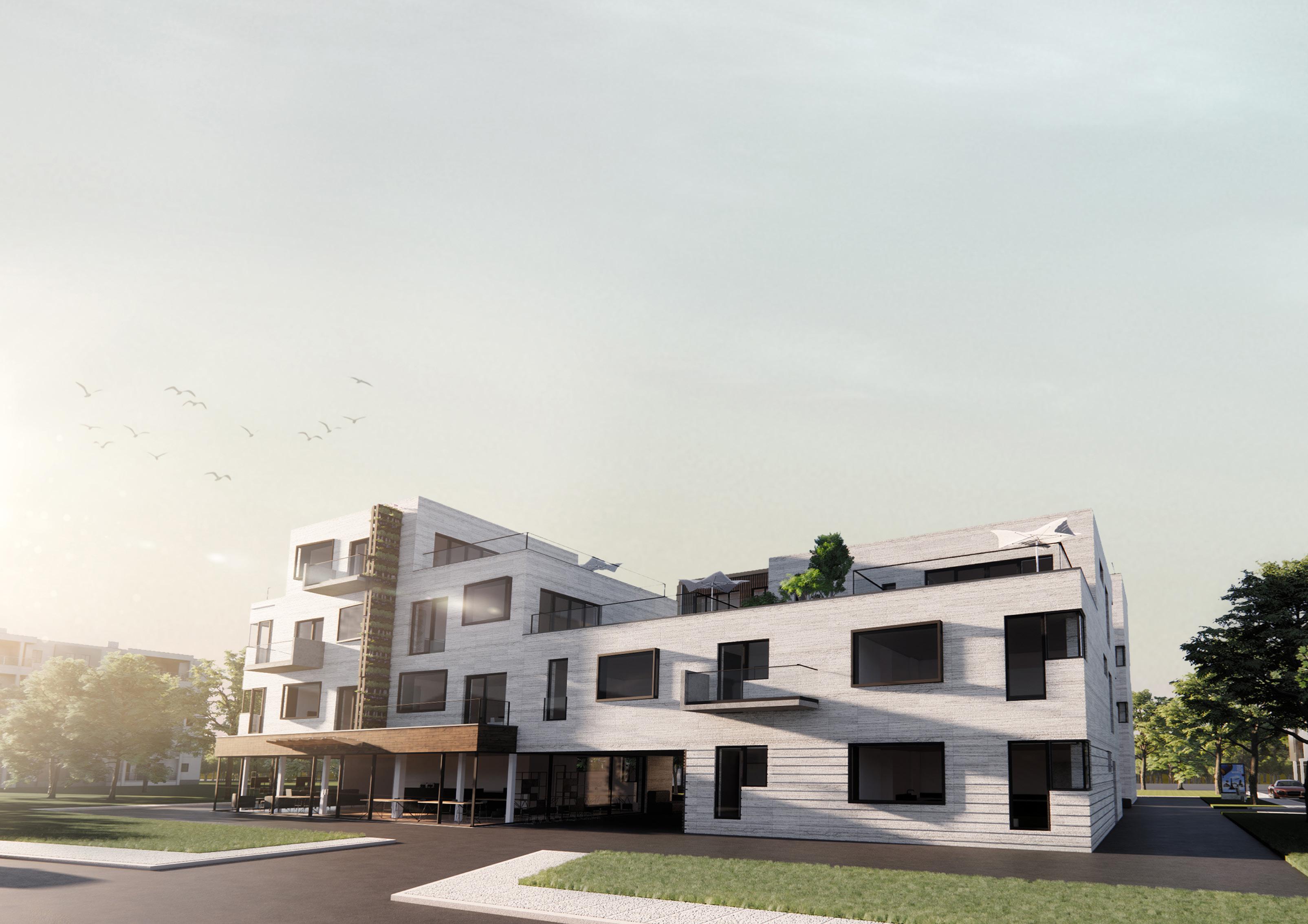 The vision of this architecture is meant to fit perfectly into the new dense urban district in Åbyhøj. The district’s mission is to attract young people, the elderly, and families with children. The client is keen on supporting the sustainable transition of the construction sector, so this project is designed with multiple sustainable initiatives.