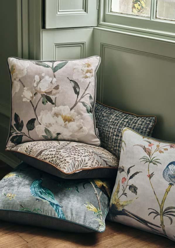 A charming collection of cushions, featuring a medley of refined prints including statement stripes, chic geometrics and painterly botanicals all printed on the iconic Linara Linen Union, complete with colourful piping.