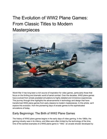 World War II has long been a rich source of inspiration for video games, particularly those that focus on the thrilling and dramatic world of aerial combat Over the decades, WW2 plane games have evolved from simple pixelated simulations to highly detailed and immersive experiences. This journey through time highlights the advancements in technology and design that have transformed WW2 plane games from early classics to modern masterpieces. In this article, we’ll explore this evolution, from the pioneering days of arcade games to the sophisticated simulations of today