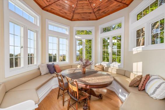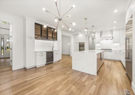 Miriam Hill mansion equipped with elevator connecting fully finished basement to kitchen and upper floor bedrooms with en-suites, located in a cul-de-sac with mature gardens in sought after neighborhood with 0.69 acres. The south facing family room fills with sunlight from soaring skylights and beautiful oversize windows, connecting with open kitchen, breakfast nook over looking well maintained garden. The chef kitchen offers Viking gas cooktop, double wall ovens, Sub Zero fridge, three dishwashers and big walk in pantry. The open flow of the kitchen leads to breakfast nook with beautiful bow windows over looking the beautiful fenced back yard.