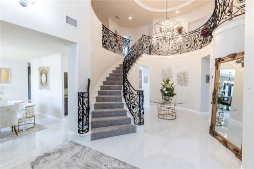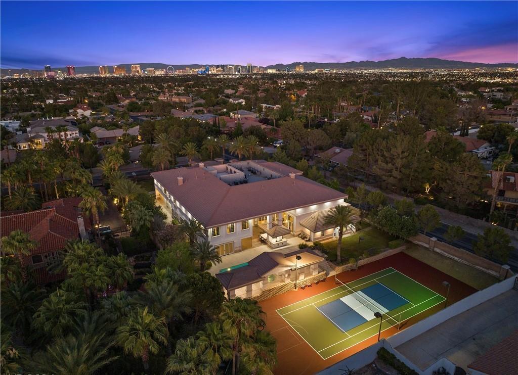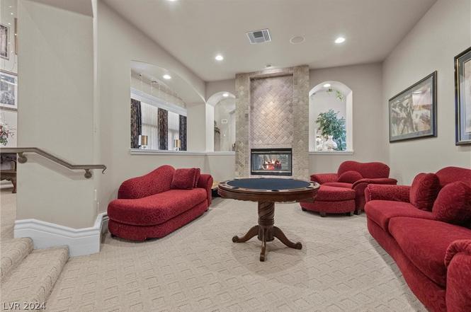Welcome to Las Vegas Luxury in this privately gated estate, once owned by Michael Jackson, spanning over 17,000 sqft on a 1-acre lot in Section 10. The grand entrance features a circular driveway & grand entry doors leading to a Roman-style interior with high ceilings, an indoor fountain, & a curved staircase.