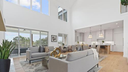 Welcome to your oasis of tranquility, a sanctuary in the exclusive gated community of 84 homes at The Grove in Steiner Ranch, where luxury living meets natural beauty. This exceptional home, constructed in 2017, exudes elegance and refinement at every corner. Step inside the foyer and be embraced by the contemporary stairs that frame the way to the expansive openconcept living space that offers captivating views of the outdoor living space, pool area, and green belt.