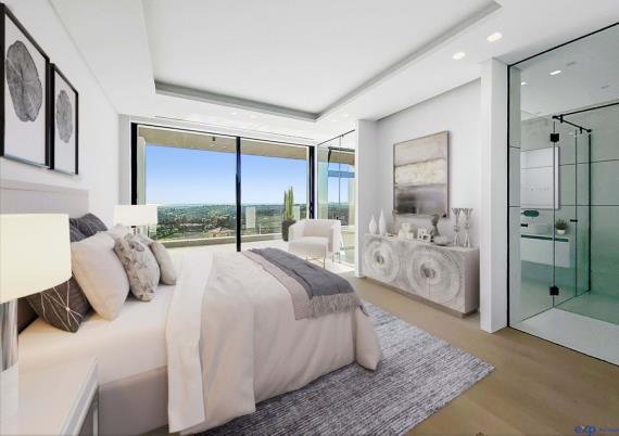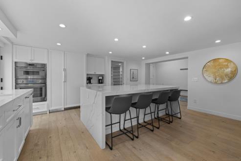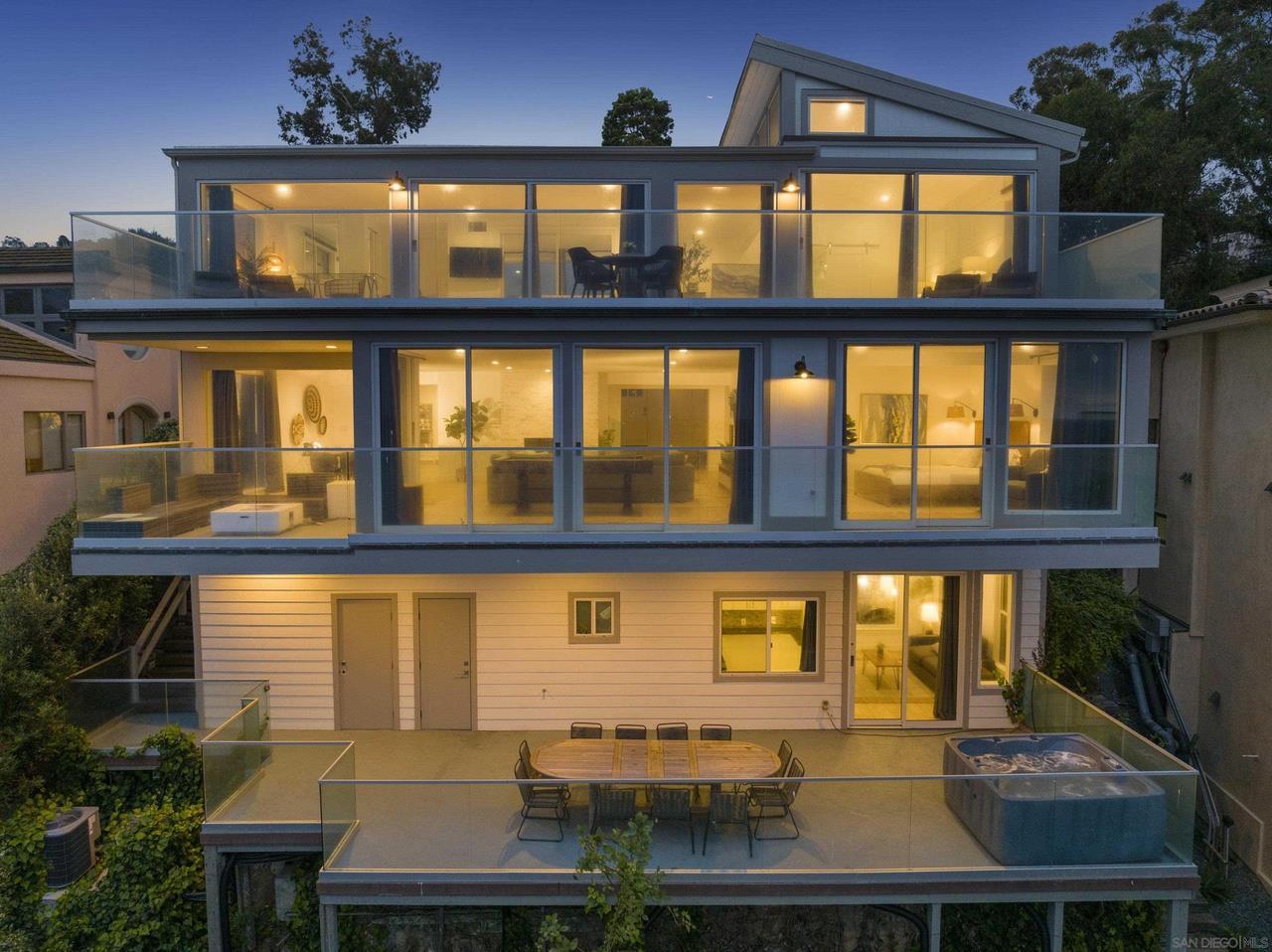 This sleek, 3-story luxury home impresses before even entering thanks to its walk street-facing front yard with synthetic lawn & lounging patio, but it’s what’s inside that will take your breath away. The home’s dramatically open, light-filled main level with double-height ceilings combines an oceanview living room with fireplace, adjacent dining area and a fully equipped chef’s kitchen with 6burning Viking Professional range, charming passthru-style bar counter and nook. Upstairs, an art gallery-inspired loft area with jaw-dropping transparent glass flooring boasts impressive sight lines to the great room below and crashing ocean waves beyond