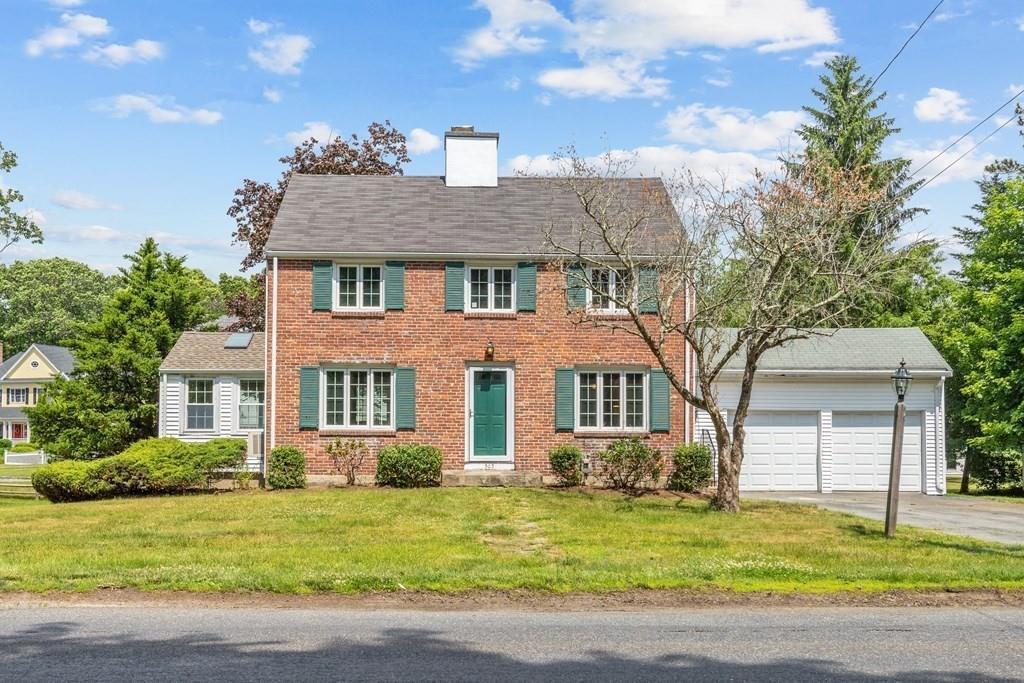 Brick-front center entrance colonial features classic curb appeal. Front-to-back living room, formal dining room, eat-in kitchen, beamed-ceiling family room with sliders to the back yard, and a mudroom with a half bath round out the first floor. Large main bedroom with a walk-in closet, two well-proportioned additional bedrooms, and a full bath with laundry complete the second floor. Harwood floors throughout. Gas heat, hot water, and cooking. Two-car garage. All attractively set on a level corner lot with 110-foot frontage and 80-foot frontage on a dead end side street.