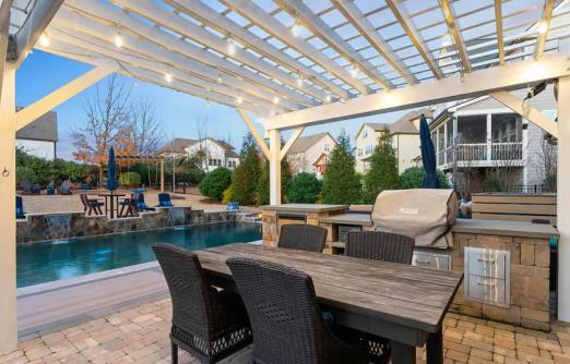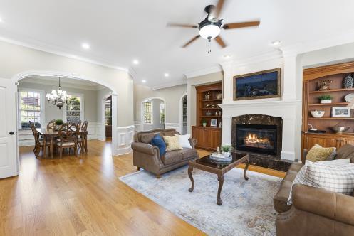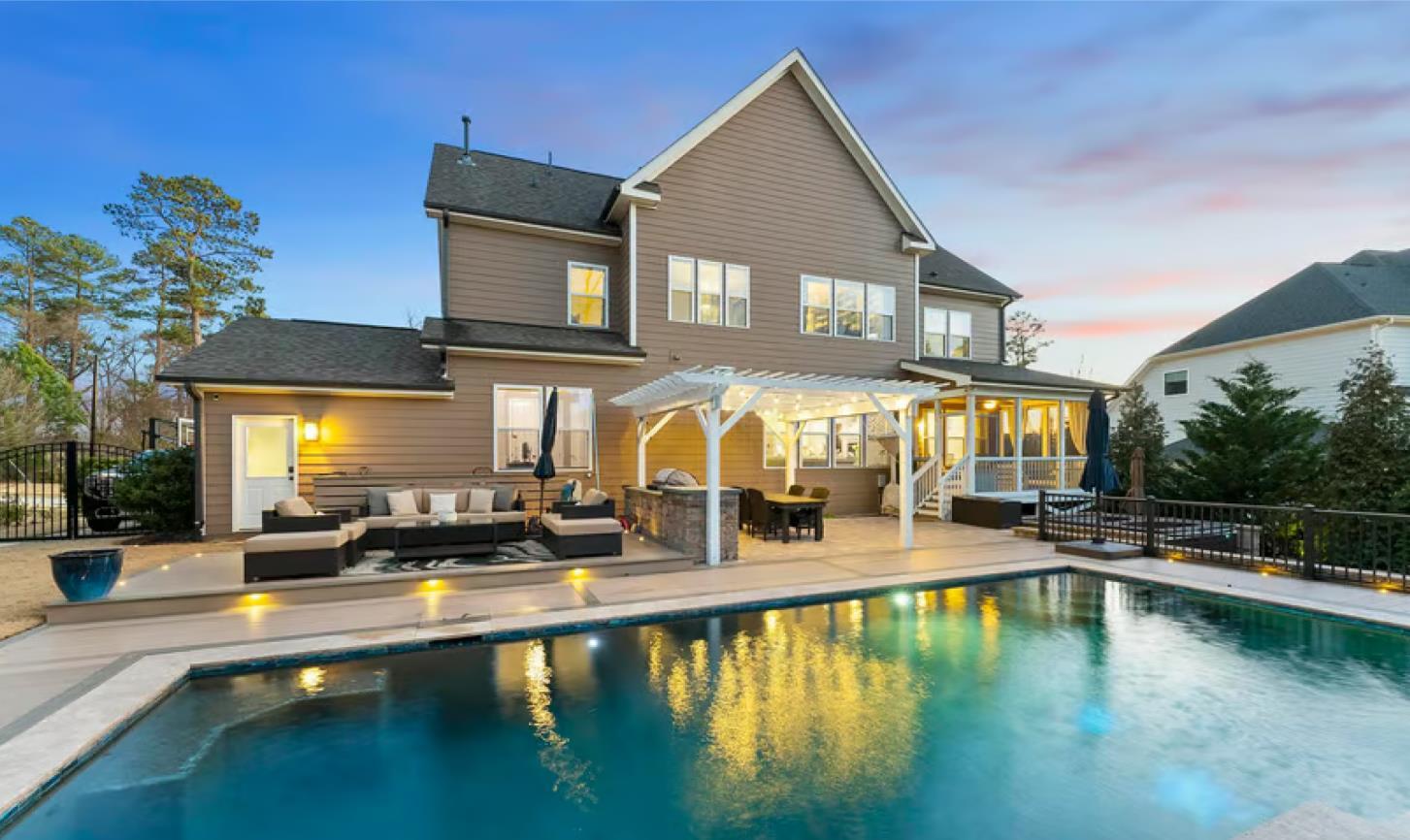 This home is fully loaded with a bonus room, home theater, 3 fireplaces, a backyard oasis, and more. The piano/sitting room welcomes you with a gas fireplace. The gourmet kitchen features S/S Bosch appliances, granite, and a custom walk-in pantry. The adjacent living room is adorned with a 2nd gas fireplace and custom built-ins. The primary suite features an adjoining room perfect for a home office or gym.