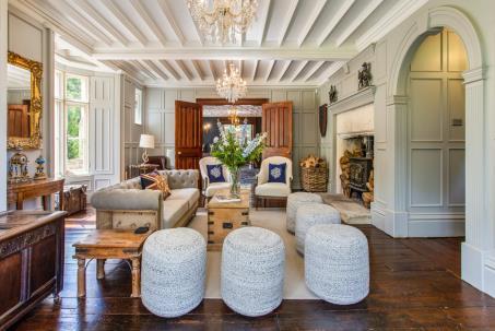 As you step through the gothic arched porch, you'll be greeted by the warm ambiance of this property. The original features, such as the ornate fireplace, hardwood floors, and mullion windows, add a touch of elegance and timeless appeal. The entrance hall is abundant with period features, including an original stone fireplace and carved wooden surround set between two ornate arches with decorative plasterwork on the ceiling.