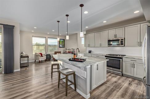 This Blackhawk Ranches 6-bedroom estate gleams with modernity & features all the amenities of a true entertainer's home. The wood-burning fireplace anchors the sleek living room. The motif continues in the gourmet kitchen with a massive island and high-end appliances. The primary suite includes a sitting area, two immense walk in closets, a spacious en-suite bathroom with a soaking tub located under your own sky-lit tower, walkthrough shower and dual vanities. The exterior includes a property wide Sonos System, summer kitchen, whole house generator, basketball court, gas-heated pool and spa, mature fruit trees, screened outdoor entertainment area with wind sensors, porte cochere, and more!