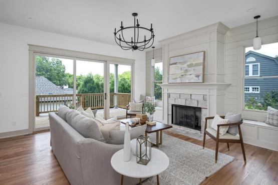 完璧をお探しですか? 和ばんスクエアの好立地にある NEW CONTRUCTIONの傑作をいち早く見に 来てください! 時代を超越したニュー イングランド ス タイルは、5 つのベッドルームと 5 1/2 のバスを備えた 多世代の生活に適した壮大な家で、現代的な便利さと 効率性を兼ね備えています。 1 階には、オフィスとパ ウダー ルーム、広い朝食用ダイニング エリアと暖炉の ある広々としたファミリー ルームを備えたオープン フ ロア プランのキッチンがあります。 キッチンには、 Thermador 電化製品と特注のカウンタートップがあり ます。 主寝室には、2 つのウォークインクローゼット と、シャワーとバスタブ付きの専用バスルームがあり ます。