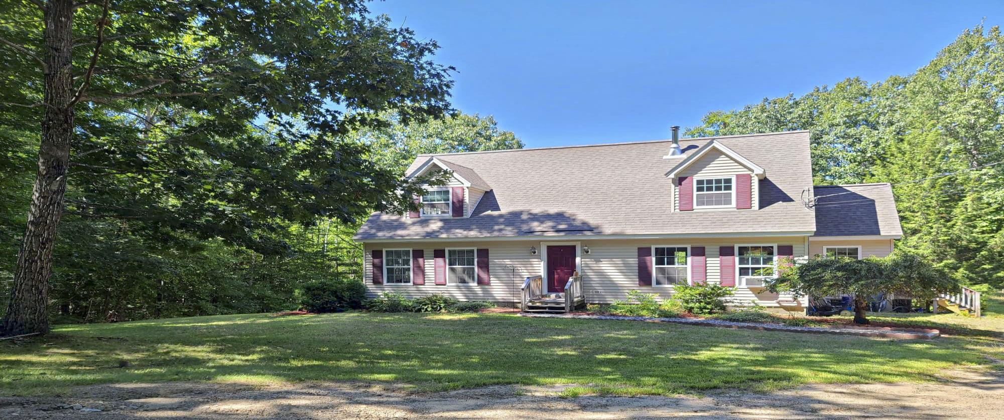 人気のニューハンプシャー州メレディスの静かなエリ アに位置する、6 1/2 エーカーの樹木が茂ったエーカ ーに建つこの美しいケープの家を見に来てください。