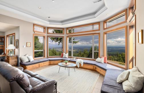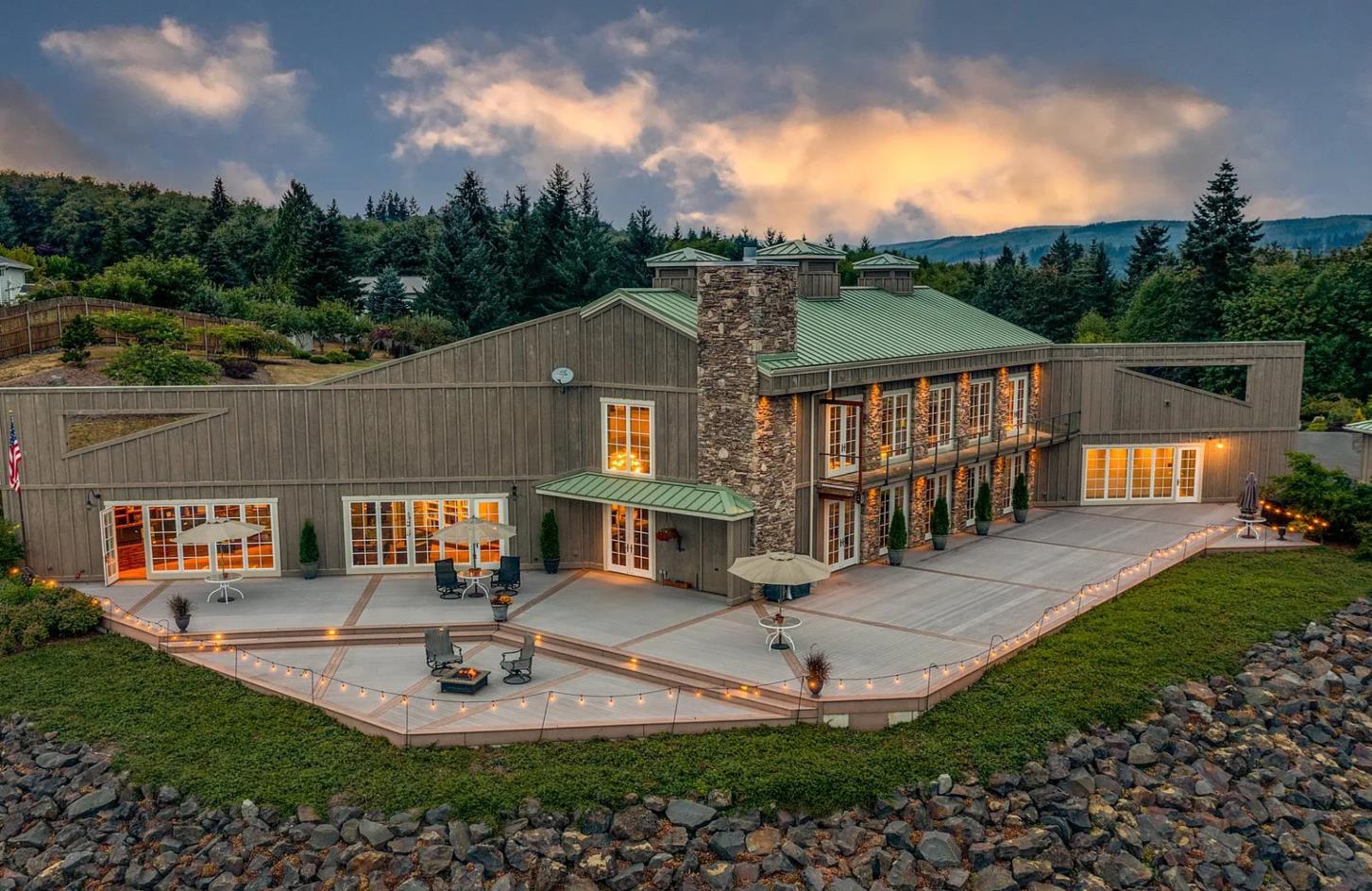 1500フィートの私道を運転すると、これから訪れる 素晴らしい景色のヒントが見えてくるので、ストレス レベルが薄れ始めます。18.79エーカーの美しい敷 地に建てられた現代的な特注の家に入ると、5つの 山、湖、コロンビア川とウィラメット川の船、マルトノ マ海峡のヨット、ソービー島のカボチャ畑を含む農 場のパッチワークの景色からプライバシーと平和を 体験できます。 4