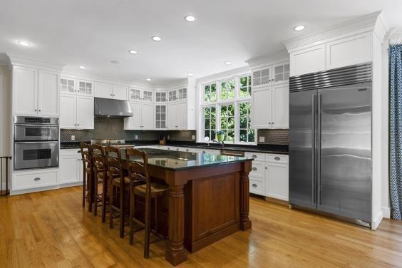 中に入ると、開放的で広々としたフロアプランがあ り、最高級の電化製品と全体にオーク材の堅木張 りの床を備えた広々としたキッチンが強調されてい ます。