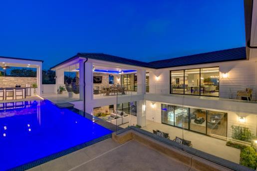 この洗練された3階建ての豪華な家は、人工芝生とく つろげるパティオのある散歩道に面した前庭のおか げで、入る前から印象的ですが、息を呑むのは内部 にあるものです。家のドラマチックにオープンで光に 満ちたメインレベルは、2倍の高さの天井があり、暖 炉付きのオーシャンビューのリビングルーム、隣接す るダイニングエリア、6つのバーキングプロフェッショナ ルレンジを備えた設備の整ったシェフのキッチン、魅 力的なパススルースタイルのバーカウンターとヌック を組み合わせています。上階には、アートギャラリー 風のロフトエリアがあり、驚異的な透明なガラスの床 があり、眼下の素晴らしい部屋とその向こうに打ち寄 せる海の波への印象的な視線が自慢です。