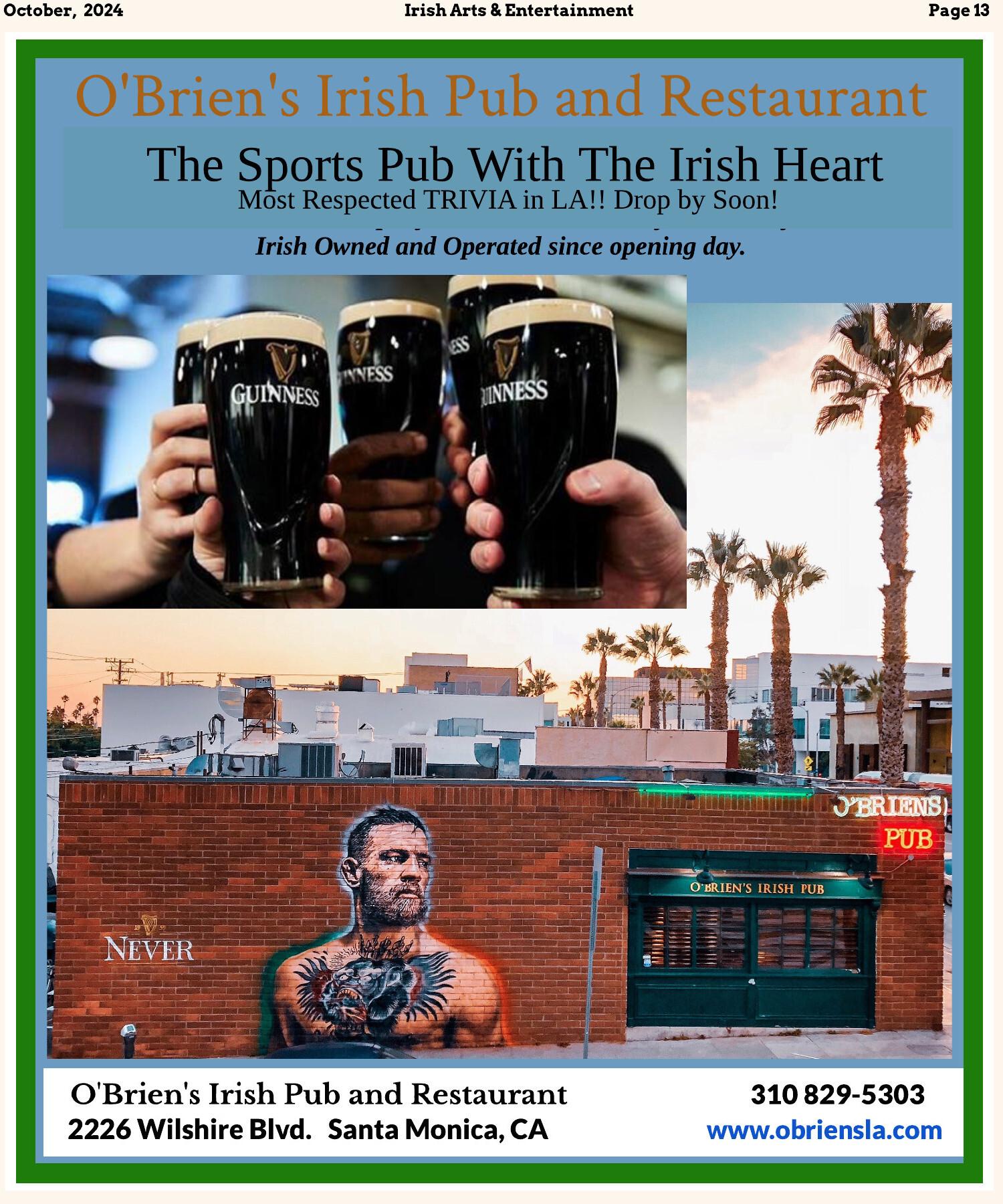 Irish Pub 2226 Wilshire Sant a Monica, CA w w w.obriensla.com