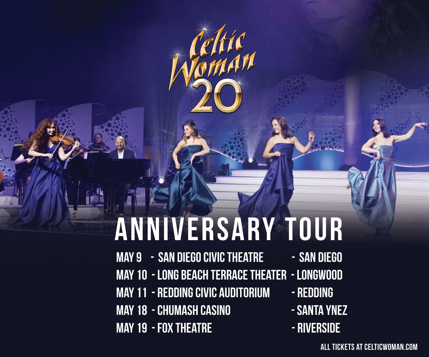 On the heelsof the successful ?PostcardsFrom Ireland,?Celtic Womanwill carry on its legacy of uplifting performancespacked with breath-taking harmoniesand instrumental virtuosity. The group today announced it will bring an all-new live show to celebrate its20th anniversary to North America TheCeltic Woman 20th Anniversary Tourwill be delighting audienceswith itsfresh blend of traditional and contemporary Irish music that echoes Ireland'srich musical and cultural heritage,while reflecting the vibrant spirit of modern Ireland.