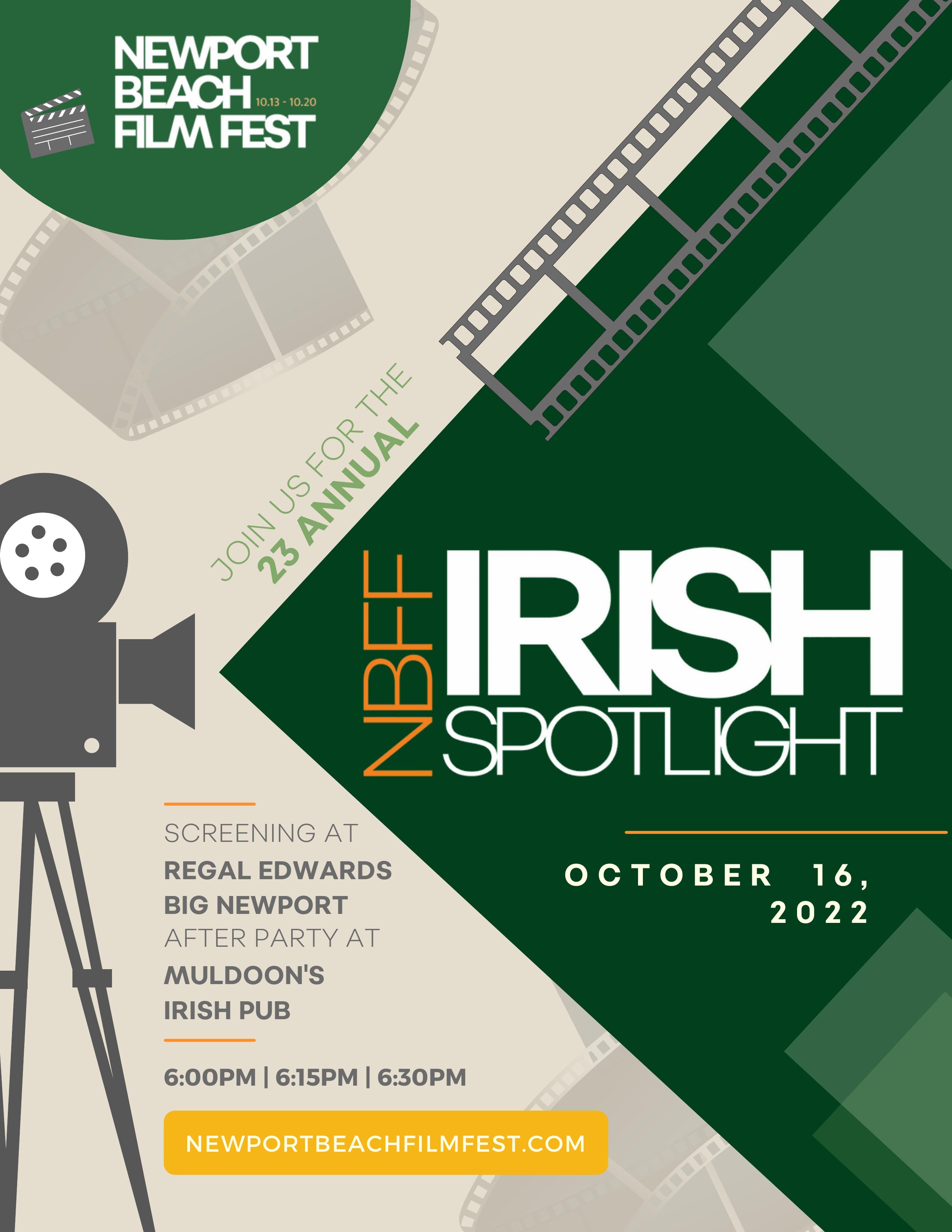 On Oct ober 16t h, t he Irish Spot light t akes place as part of t he New port Beach Film Fest ivl This is t he 23rd year and t he Irish Art s and Ent ert ainm ent and Muldoon's Irish Pub have part icipat ed every year Act or/ Film m aker Ow en Dara w ill be represent ing us t his year at t he event !