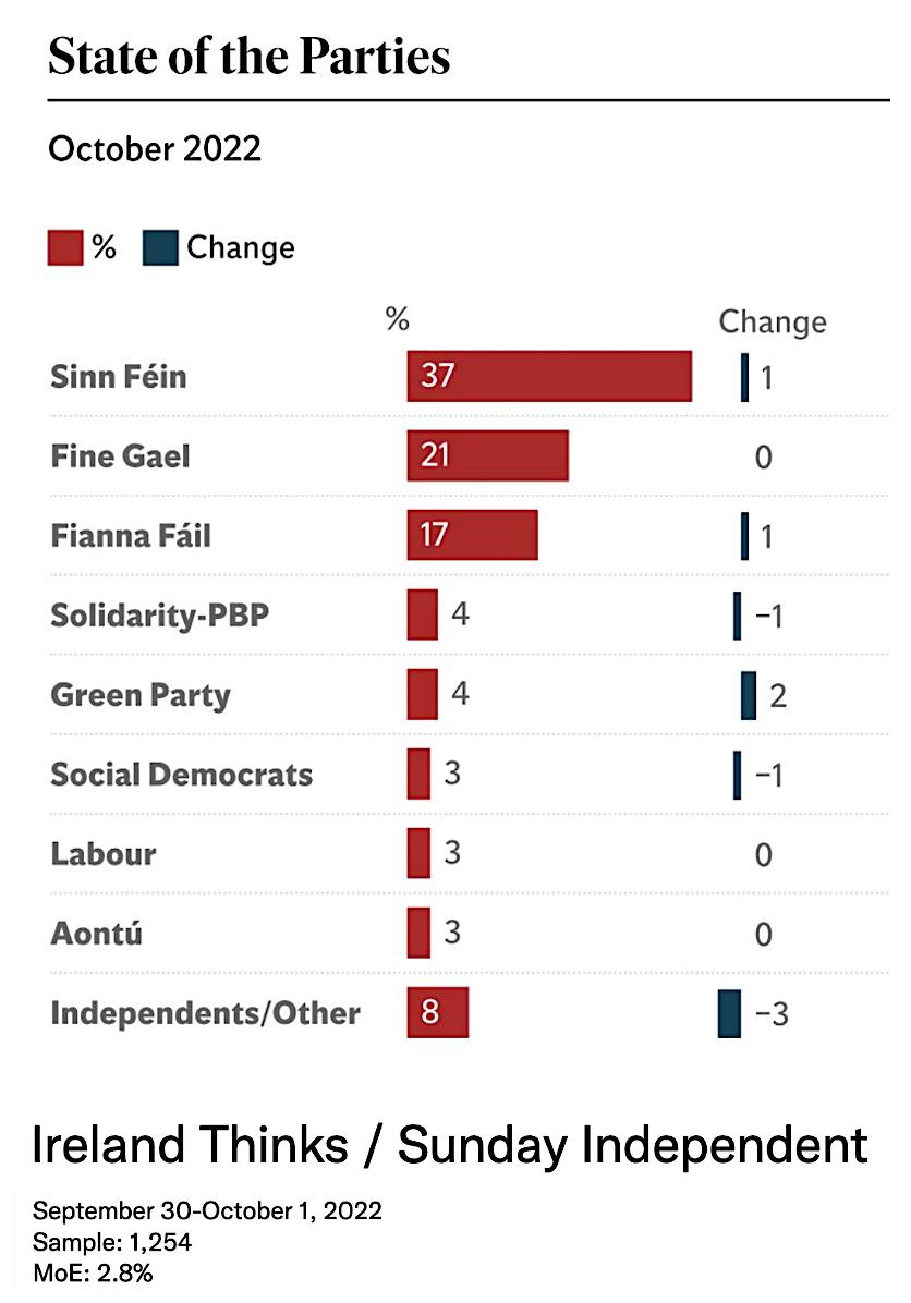 Meanw hile, Sinn Fein has increased t heir lead as t he largest part y in bot h jurisdict ions of Ireland, confirm ing t he Irish people's desire for const it ut ional change since Sinn Fein has a unit ed Ireland high on it s agenda