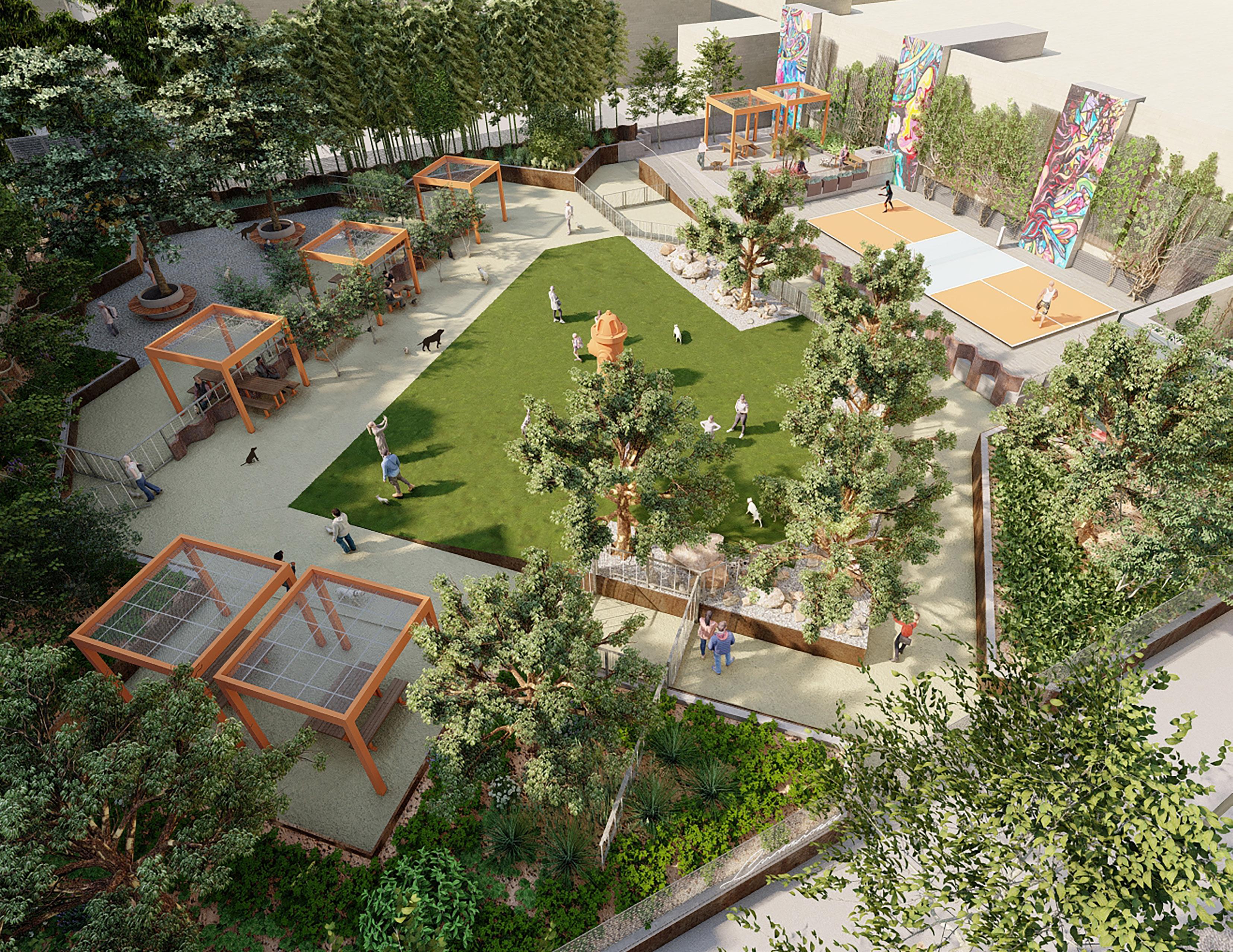 The Lumina Hollywood Community Park has been through a variety of transformations in the decade since it’s been constructed. The existing community park sits atop a subterranean parking structure that serves the Lumina Hollywood mixed-use development. The certificate of occupancy conditioned the park to serve the community so the development could extend beyond existing height allowances. After litigation and tenant turnover in recent years, the park sits in disrepair and yet, locals have rebranded it the Gordon St. Dog Park in the current phase of it’s life. VDLA’s task was to explore the full potential for what the space could become.