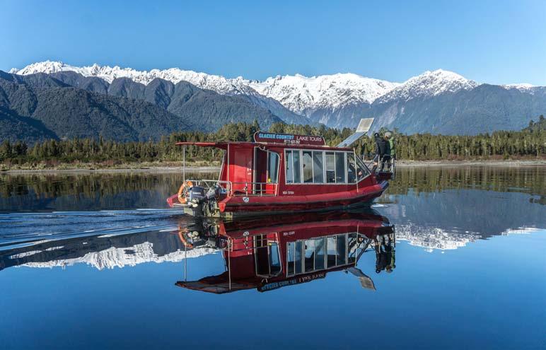 Our guided kayak tours or scenic boat tours venture further onto Lake Mapourika.
