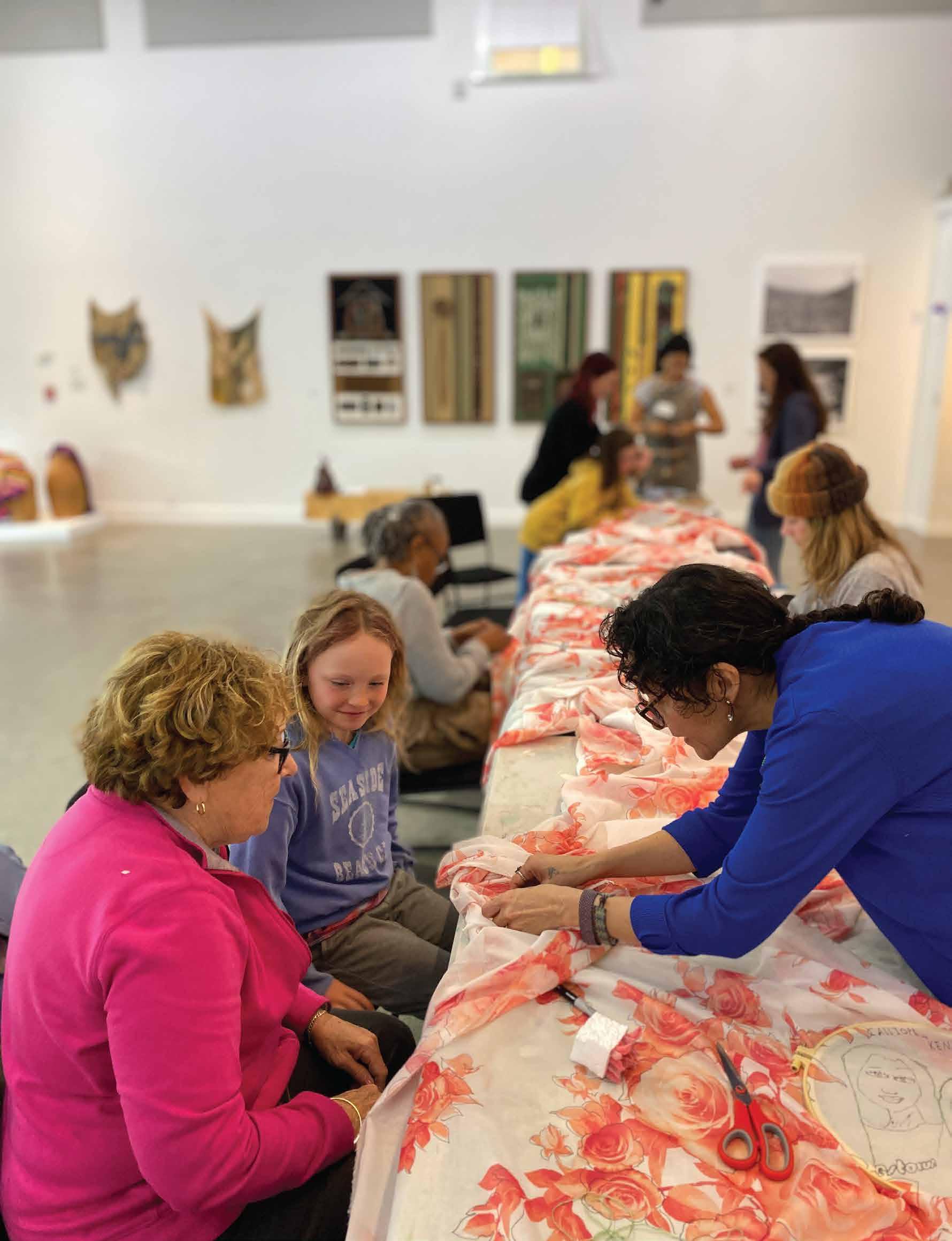 Yohanna M Roa guides participants contributing to her artwork New Historiographic Atlas, Misshaping the pattern, 2023–ongoing.