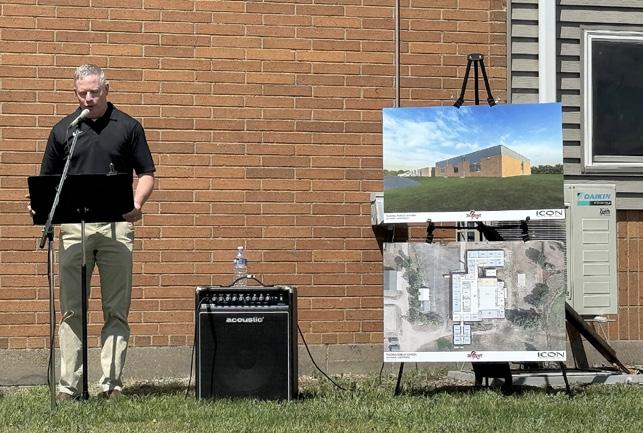 Damon Bosche, superintendent of Medina Public School District 3, addresses a crowd on July 3, 2024, during a groundbreaking ceremony for the new school addition set to be completed in the fall of 2025.