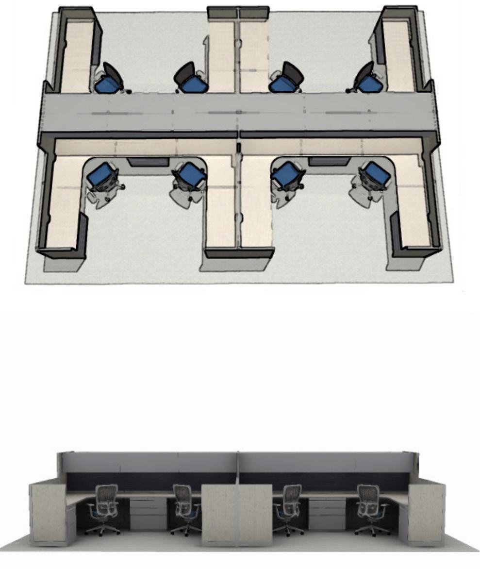 The furniture used in this project will be used by a variety of people, multiple times a day. In order to withstand all the wear and tear, these furniture selections from Knoll feature reinforced frames with solid wood stretchers underneath the seats and durable veneer on the tables. They also stand nicely aesthetically with the concept of Pixel; a mix of wood and geometric shapes.