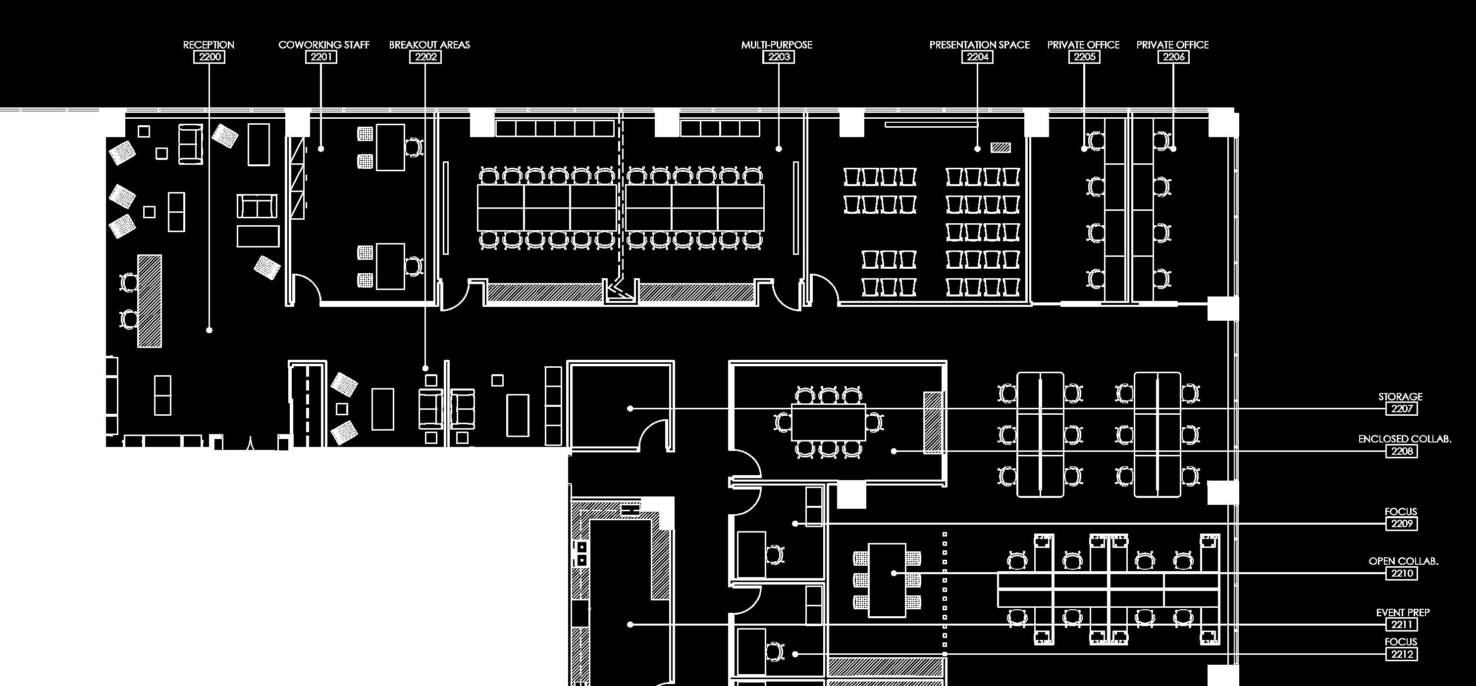 Each team member was in charge of a type of plan, whether that be floor plan, reflected ceiling plan, etc. The plan was divided into 3 sections that we each had to work on separately, but in a cohesive way. Included in my responsibilities were the space plan and program requirements.