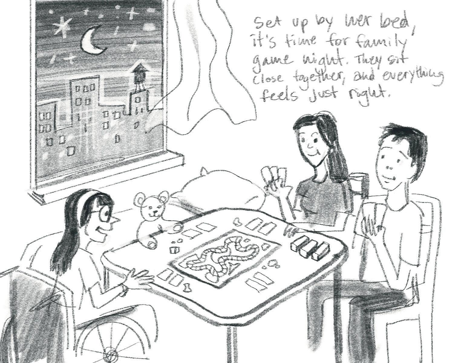 it’stimeforfamilygamenight. Theysitclosetogether, andeverythingfeelsjustright.