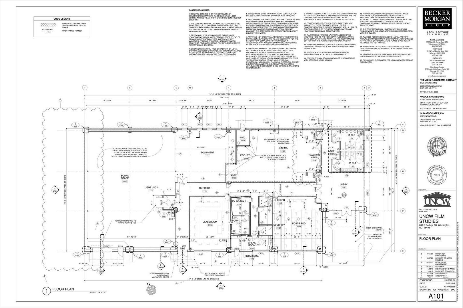 At Becker Morgan Group, I was part of the design team responsible for designing a 12,900sf facility. This facility was built to support the motion picture and television production studio, Screen Gems, in the Wilmington area, by providing student internships. The building is comprised of a 74seat cinema, a soundstage, two sound mixing rooms, and support spaces. The soundstage features a STC rated wall of 56 to reduce sound transmission, and the sound mixing rooms were designed with angular walls to enhance audio quality. This project was significant in that it was my first exposure to the use of pre-engineered metal buildings for more than just warehouse spaces. The experience proved to be educational and enlightening, particularly in regards to state construction regulations.